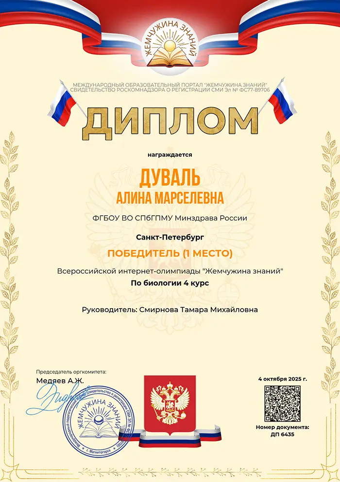 Оформите диплом победителя или участника олимпиады. К документу прилагается выписка из приказа о награждении.